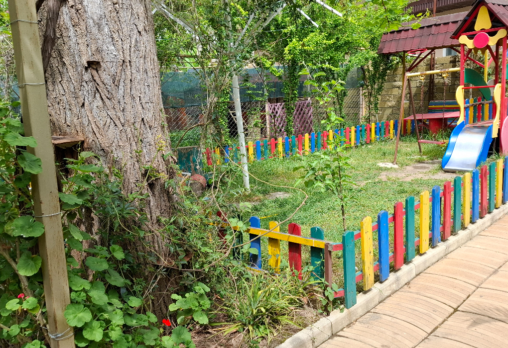 Территория отеля огорожена и заботливо наполнена цветущими клумбами и тенистыми деревьями. Есть детская игровая площадка и охраняемая парковка.
